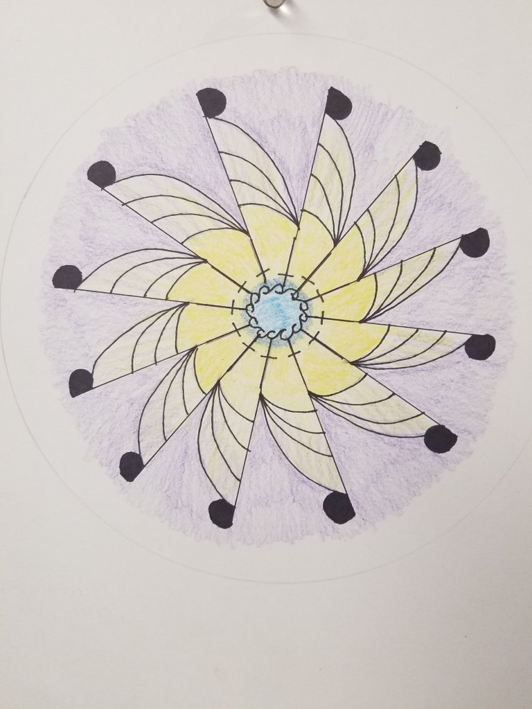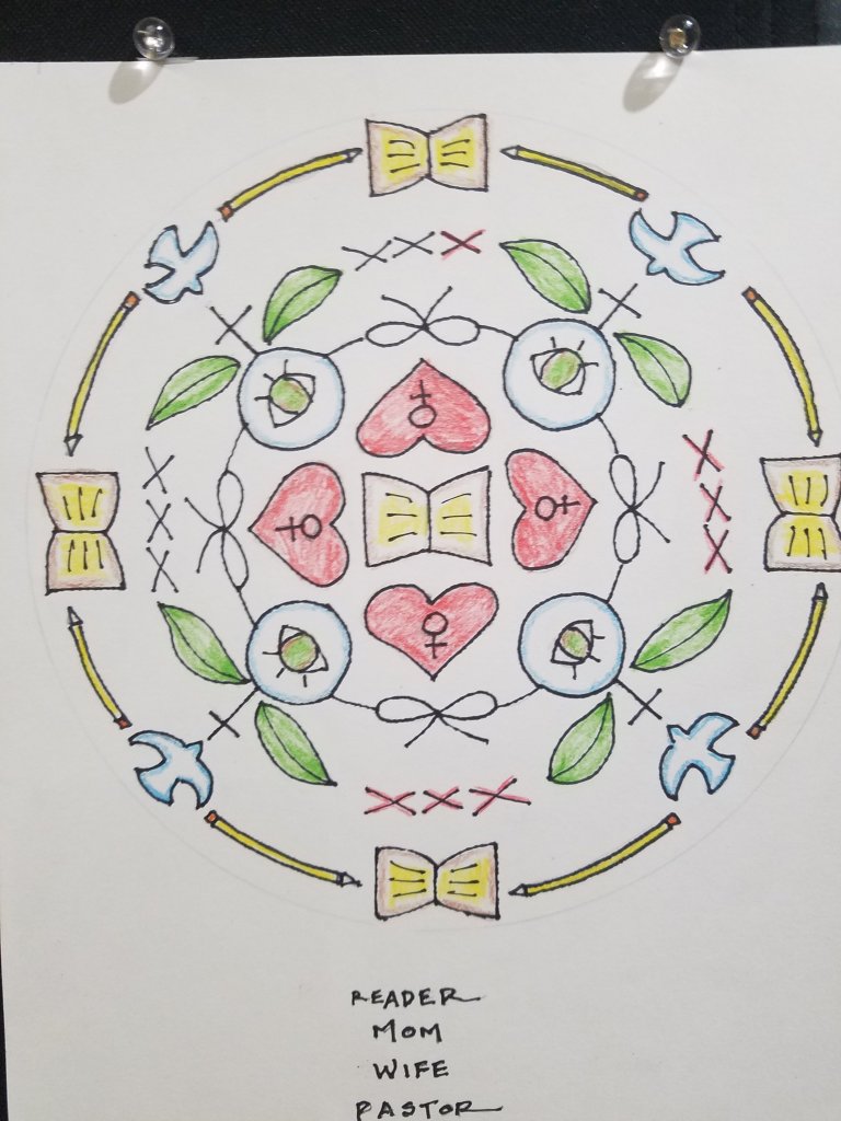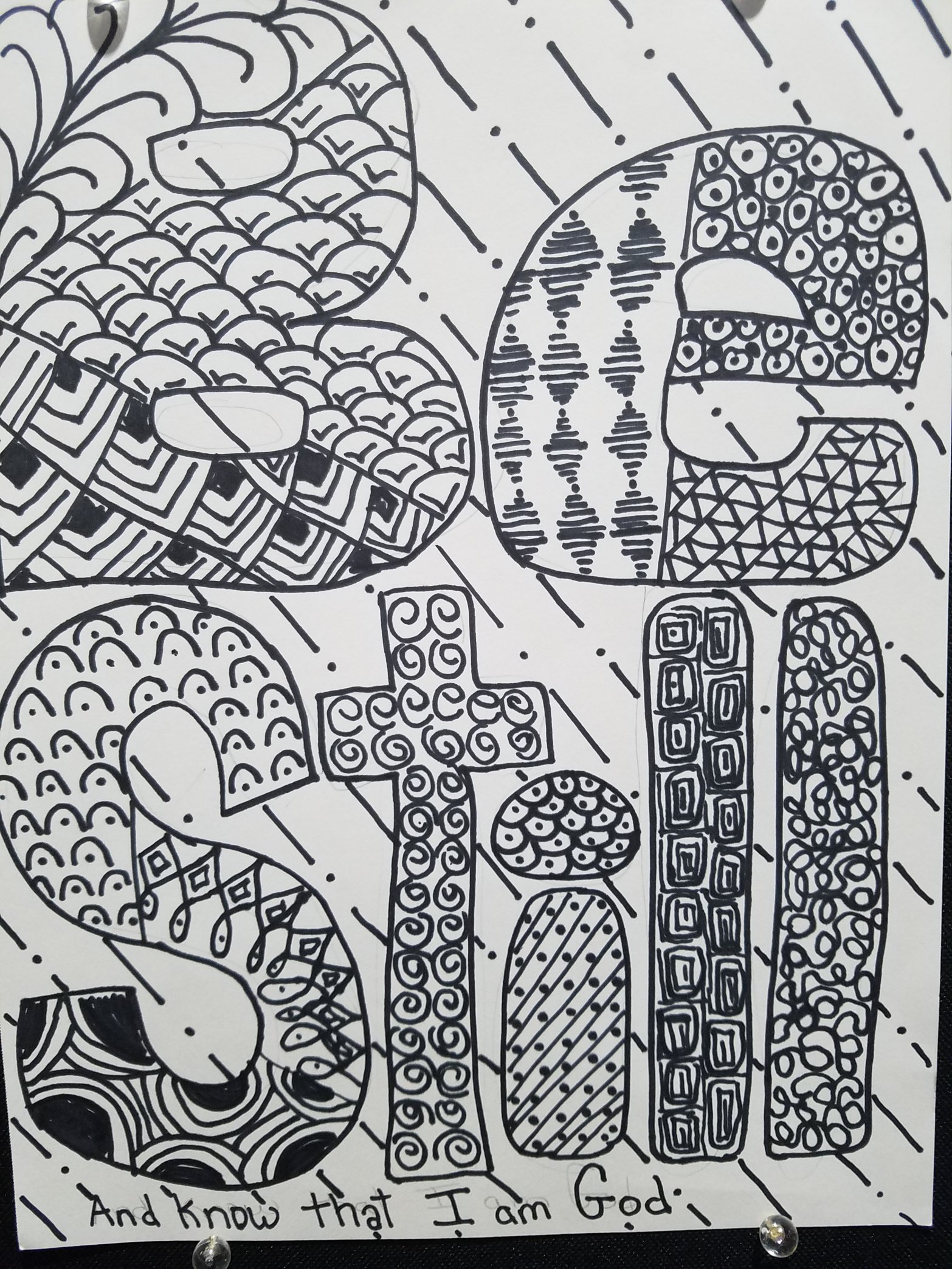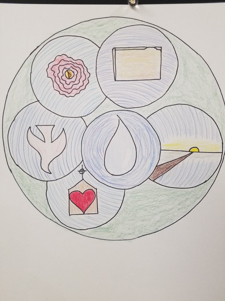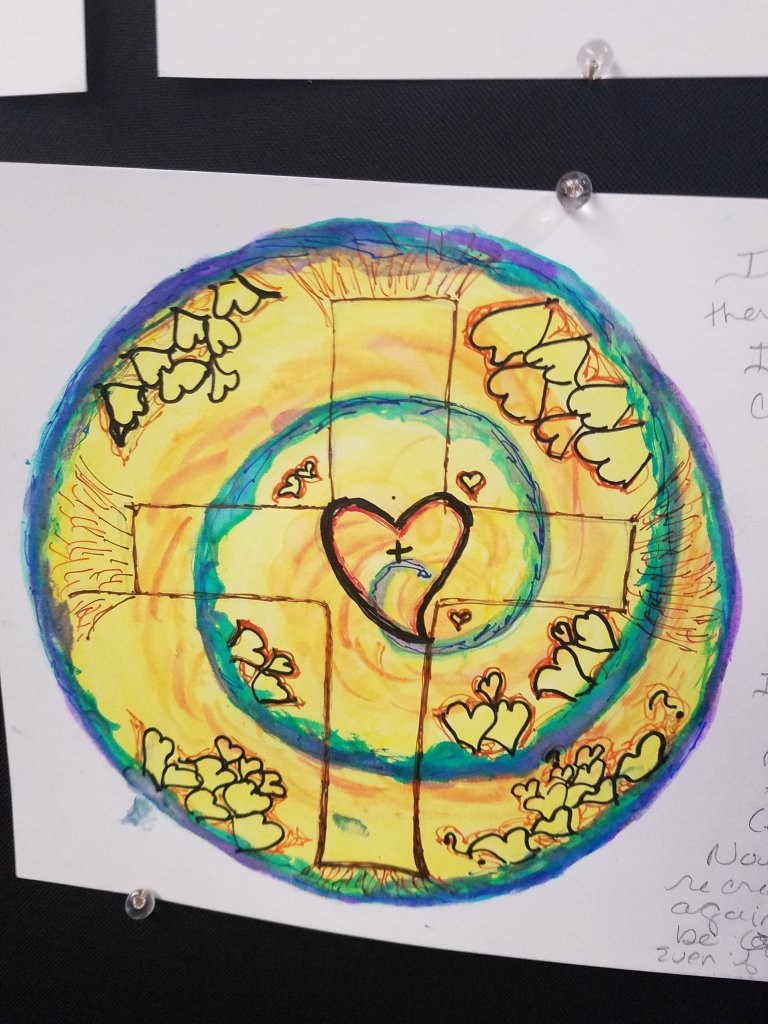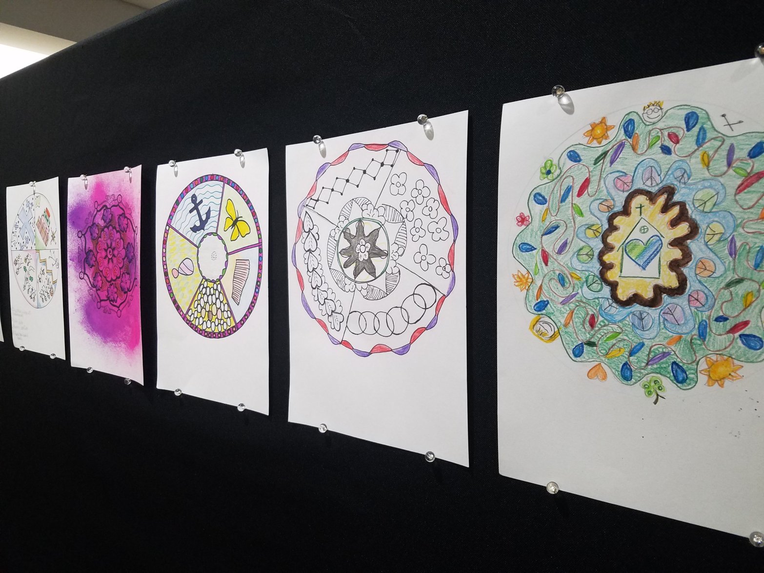 The second day was full of meditation projects. Our first ar experiment was reflecting on our faith journeys with mandalas. Our second art experience was doing some illuminated manuscripts, using zentangles.