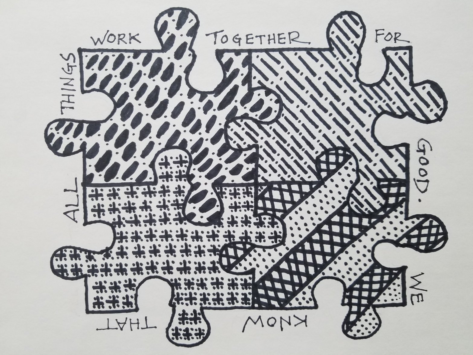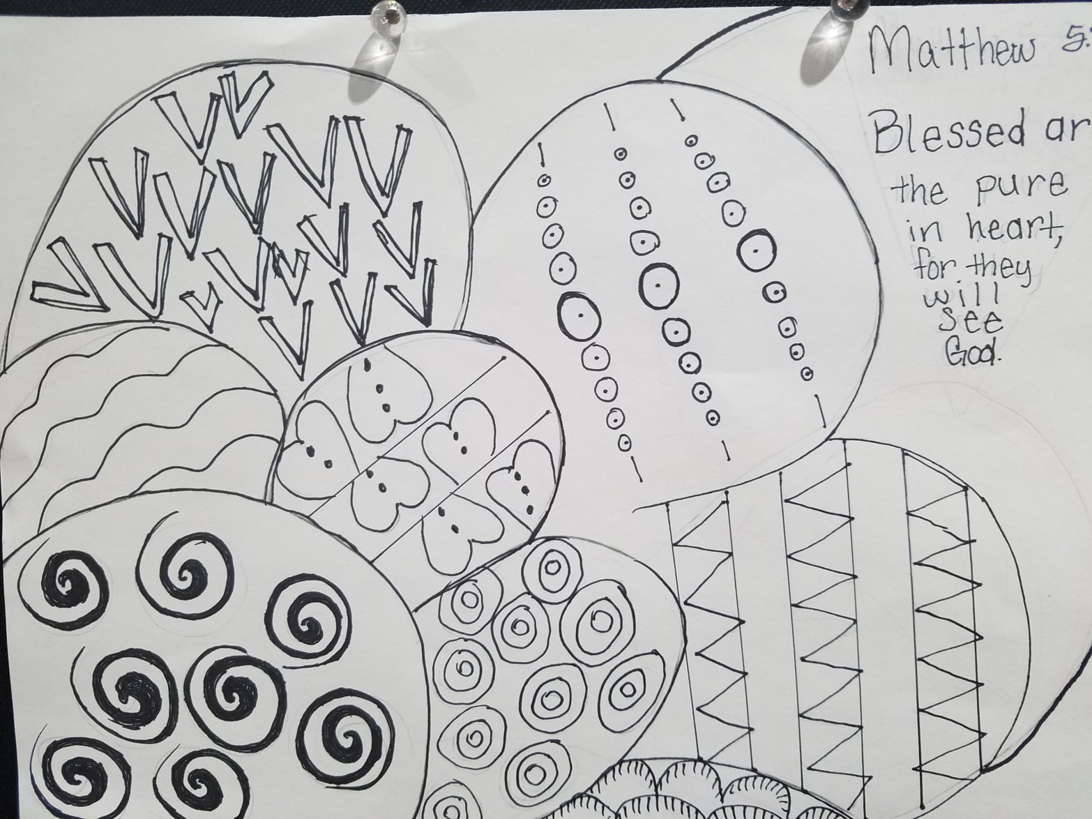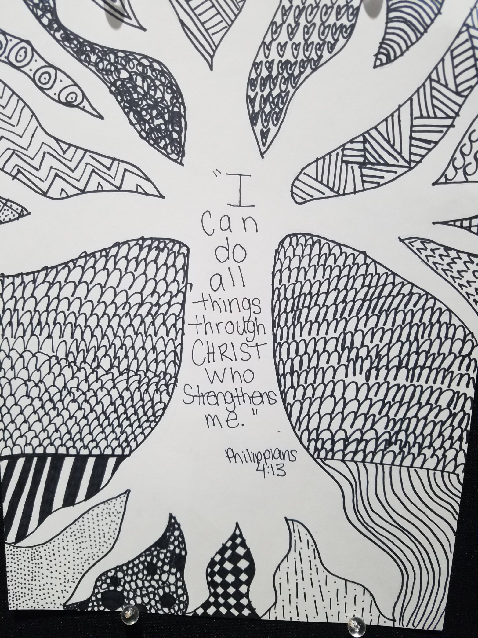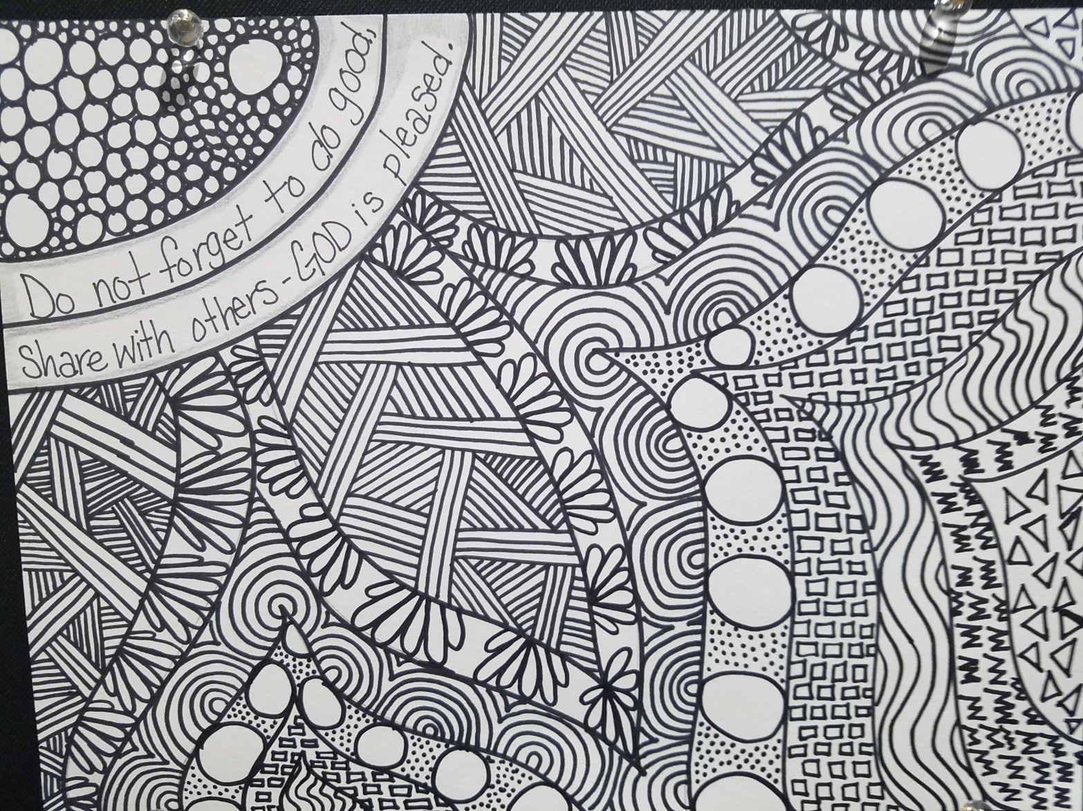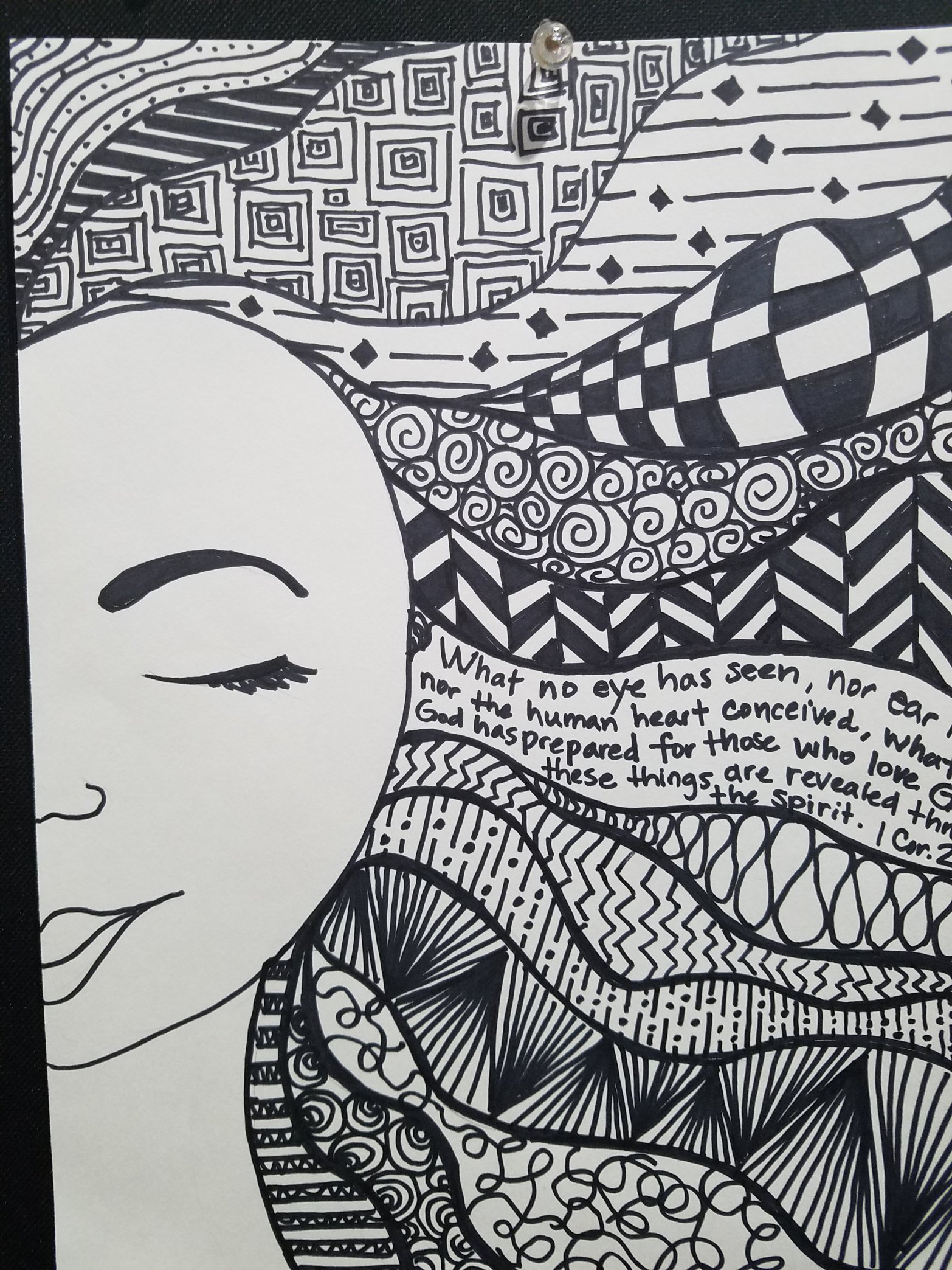 The second day was full of meditation projects. Our first ar experiment was reflecting on our faith journeys with mandalas. Our second art experience was doing some illuminated manuscripts, using zentangles.